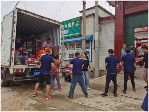 7月23日,鄭州中聯(lián)收獲機(jī)械有限公司為滎陽市汜水鎮(zhèn)口子村群眾捐贈急需的方便食品500箱和飲用水1000件,并派公司員工親自送到受災(zāi)地區(qū)人們手中。